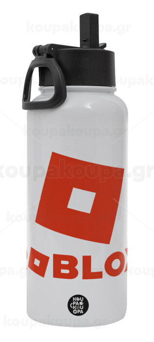 Roblox red, Metal mug thermo White with Straw and Spout Lid (Stainless steel), double wall, 950ml