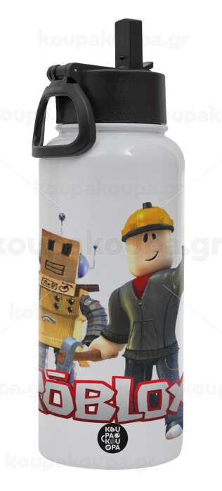 Roblox, Metal mug thermo White with Straw and Spout Lid (Stainless steel), double wall, 950ml
