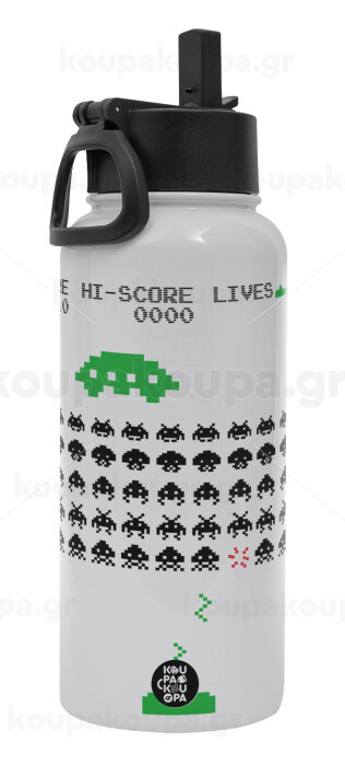Space invaders, Metal mug thermo White with Straw and Spout Lid (Stainless steel), double wall, 950ml