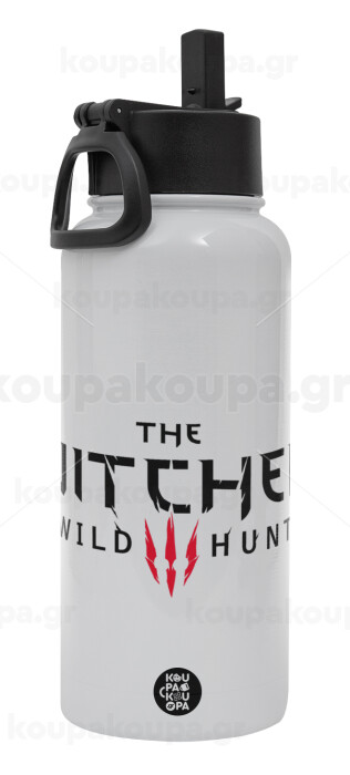 The witcher III wild hunt, Metal mug thermo White with Straw and Spout Lid (Stainless steel), double wall, 950ml