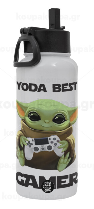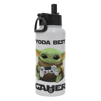 Yoda Best Gamer, Metal mug thermo White with Straw and Spout Lid (Stainless steel), double wall, 950ml
