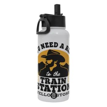 You need a ride to the train station, Metal mug thermo White with Straw and Spout Lid (Stainless steel), double wall, 950ml
