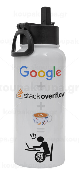 Google + Stack overflow + Coffee, Metal mug thermo White with Straw and Spout Lid (Stainless steel), double wall, 950ml