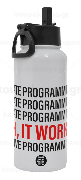 I hate programming!!!, Metal mug thermo White with Straw and Spout Lid (Stainless steel), double wall, 950ml