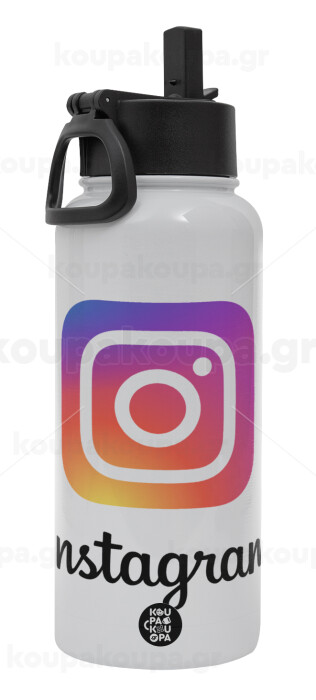 Instagram, Metal mug thermo White with Straw and Spout Lid (Stainless steel), double wall, 950ml