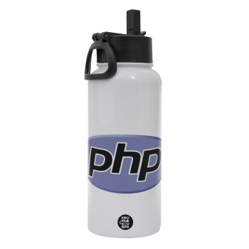 PHP, Metal mug thermo White with Straw and Spout Lid (Stainless steel), double wall, 950ml