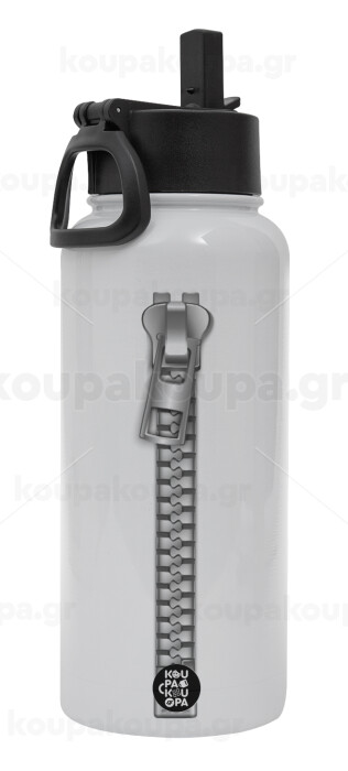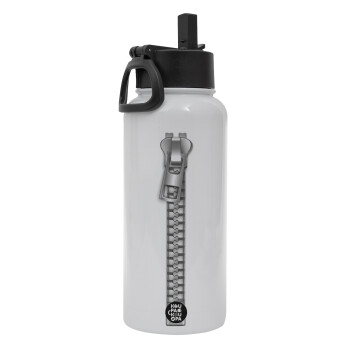 Zipper, Metal mug thermo White with Straw and Spout Lid (Stainless steel), double wall, 950ml
