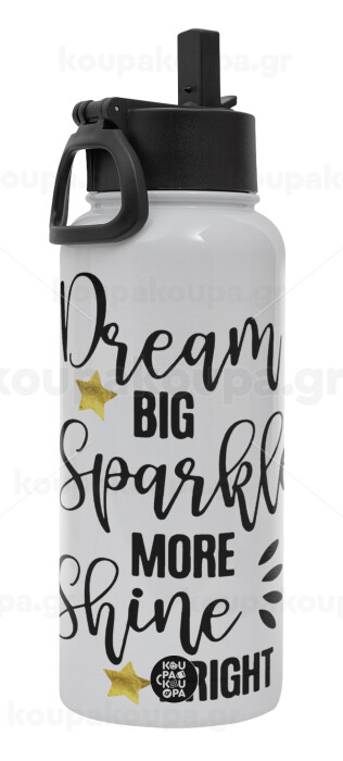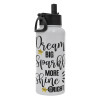 Dream big, Sparkle more, Shine bright, Metal mug thermo White with Straw and Spout Lid (Stainless steel), double wall, 950ml