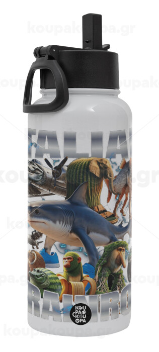 Italian Brainrot, Metal mug thermo White with Straw and Spout Lid (Stainless steel), double wall, 950ml