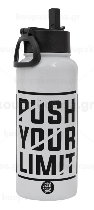 Push your limit, Metal mug thermo White with Straw and Spout Lid (Stainless steel), double wall, 950ml