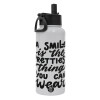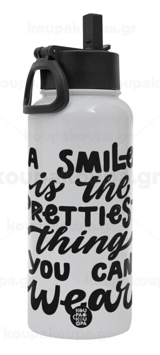 A smile is the prettiest thing you can wear, Metal mug thermo White with Straw and Spout Lid (Stainless steel), double wall, 950ml