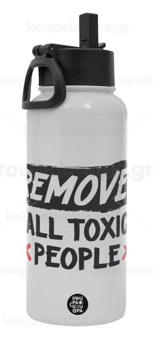 Remove all toxic people, Metal mug thermo White with Straw and Spout Lid (Stainless steel), double wall, 950ml