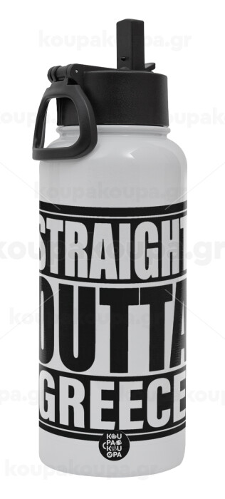 Straight Outta greece, Metal mug thermo White with Straw and Spout Lid (Stainless steel), double wall, 950ml
