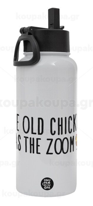 The old chicken has the zoom, Metal mug thermo White with Straw and Spout Lid (Stainless steel), double wall, 950ml