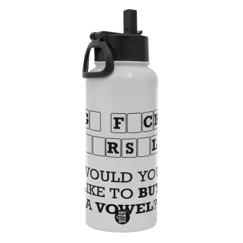Wheel of fortune, go f..k yourself, Metal mug thermo White with Straw and Spout Lid (Stainless steel), double wall, 950ml