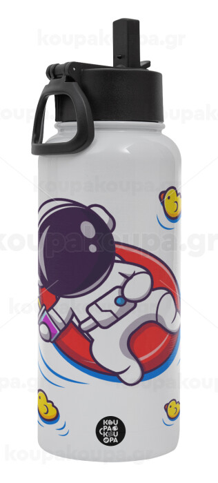 Μικρός αστροναύτης θάλασσα, Metal mug thermo White with Straw and Spout Lid (Stainless steel), double wall, 950ml