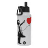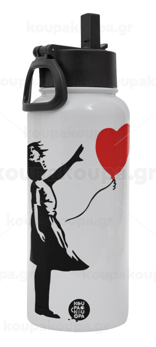 Banksy (Hope), Metal mug thermo White with Straw and Spout Lid (Stainless steel), double wall, 950ml