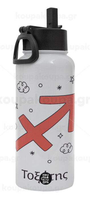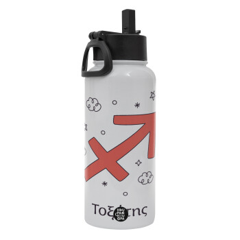 Ζώδια Τοξότης, Metal mug thermo White with Straw and Spout Lid (Stainless steel), double wall, 950ml