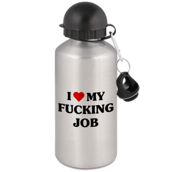 I love my fucking job, Metallic water jug, Silver, aluminum 500ml