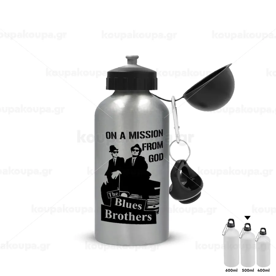 Blues brothers on a mission from God, Metallic water jug, Silver, aluminum 500ml