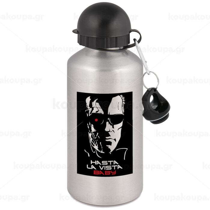 Terminator Hasta La Vista, Metallic water jug, Silver, aluminum 500ml