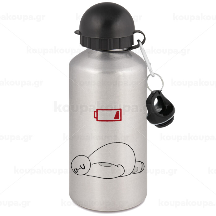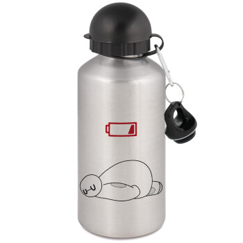 Baymax battery low, Metallic water jug, Silver, aluminum 500ml