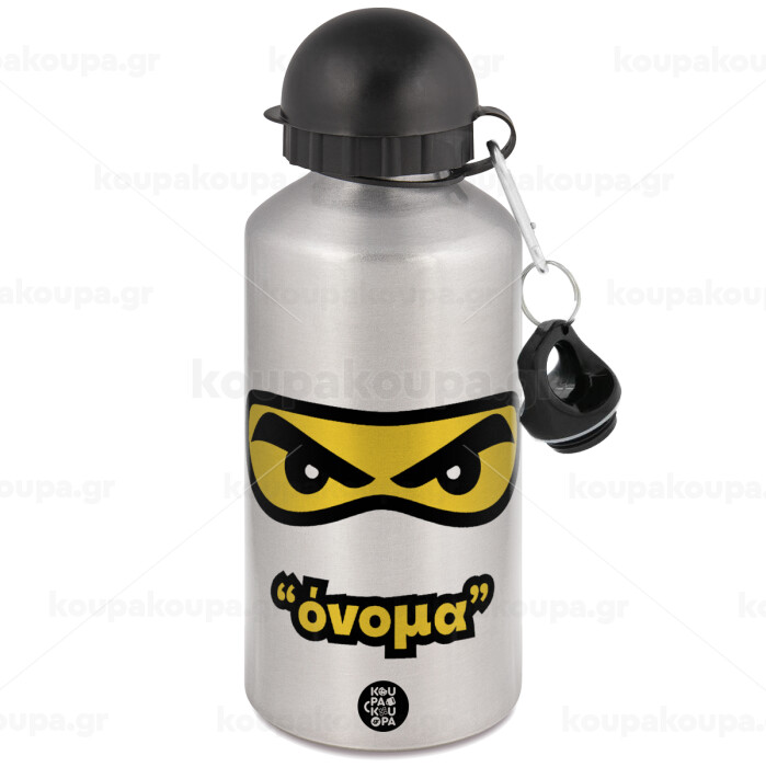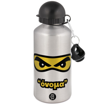 Ninja Eyes με όνομα, Metallic water jug, Silver, aluminum 500ml