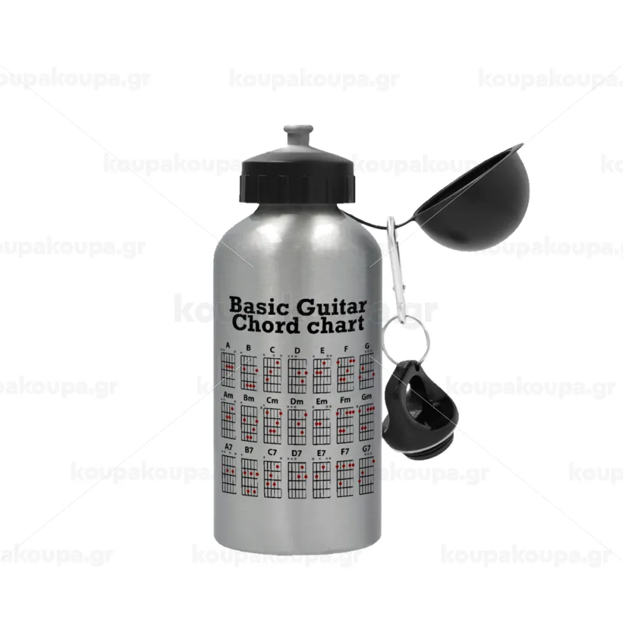 Guitar tabs, Metallic water jug, Silver, aluminum 500ml