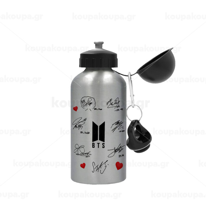 BTS signatures, Metallic water jug, Silver, aluminum 500ml