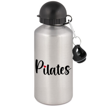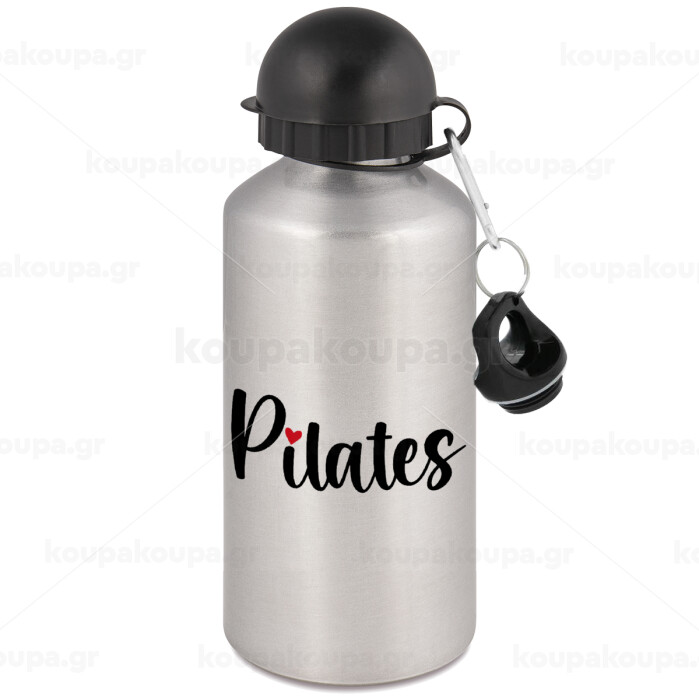 Pilates love, Metallic water jug, Silver, aluminum 500ml