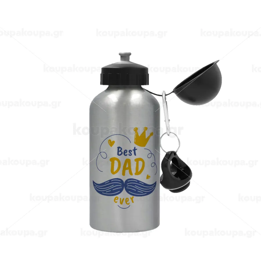 Best dad ever ο Βασιλιάς, Metallic water jug, Silver, aluminum 500ml
