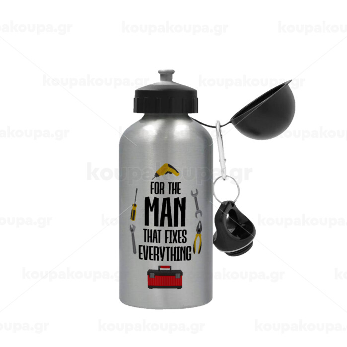 For the man that fixes everything!, Metallic water jug, Silver, aluminum 500ml