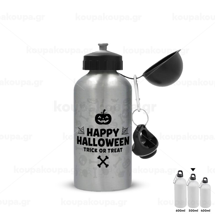 Happy Halloween pumpkin, Metallic water jug, Silver, aluminum 500ml
