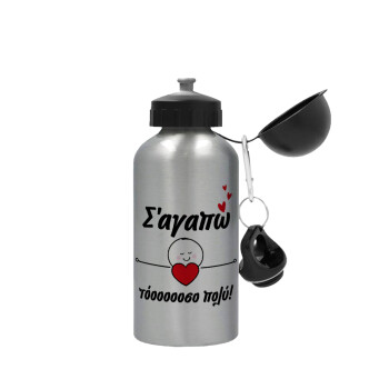 Σ΄αγαπώ τόοοοσο πολύ (Κορίτσι)!!!, Metallic water jug, Silver, aluminum 500ml