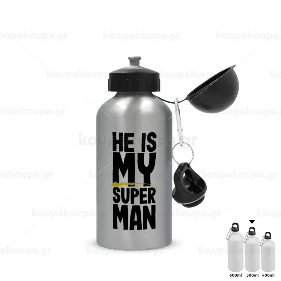 He is my superman, Metallic water jug, Silver, aluminum 500ml
