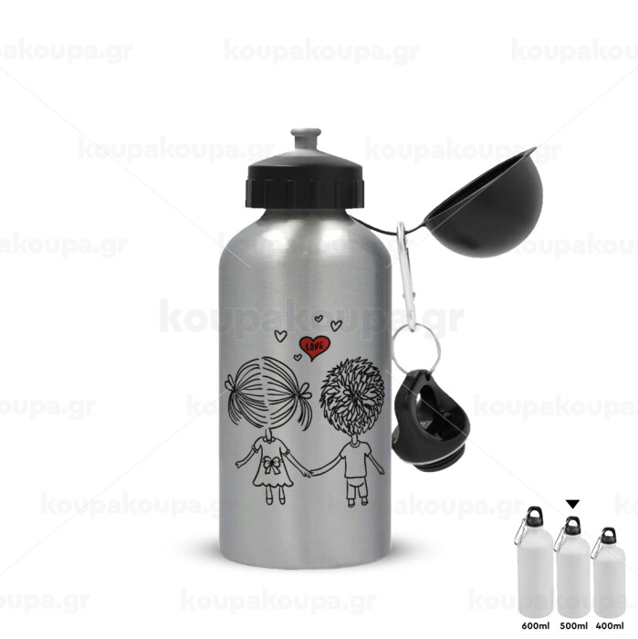 Hold my hand for ever, Metallic water jug, Silver, aluminum 500ml