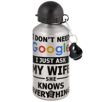 I don't need Google, just ask my WIFE, Metallic water jug, Silver, aluminum 500ml