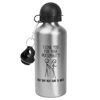 I Love you for your personality, Metallic water jug, Silver, aluminum 500ml