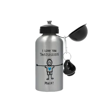 I Love you thissss much (boy)..., Metallic water jug, Silver, aluminum 500ml