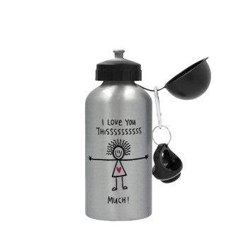 I Love you thissss much..., Metallic water jug, Silver, aluminum 500ml