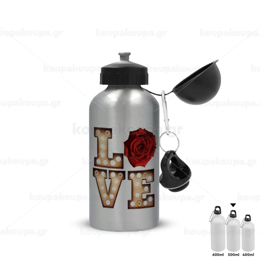 Love lights and roses, Metallic water jug, Silver, aluminum 500ml