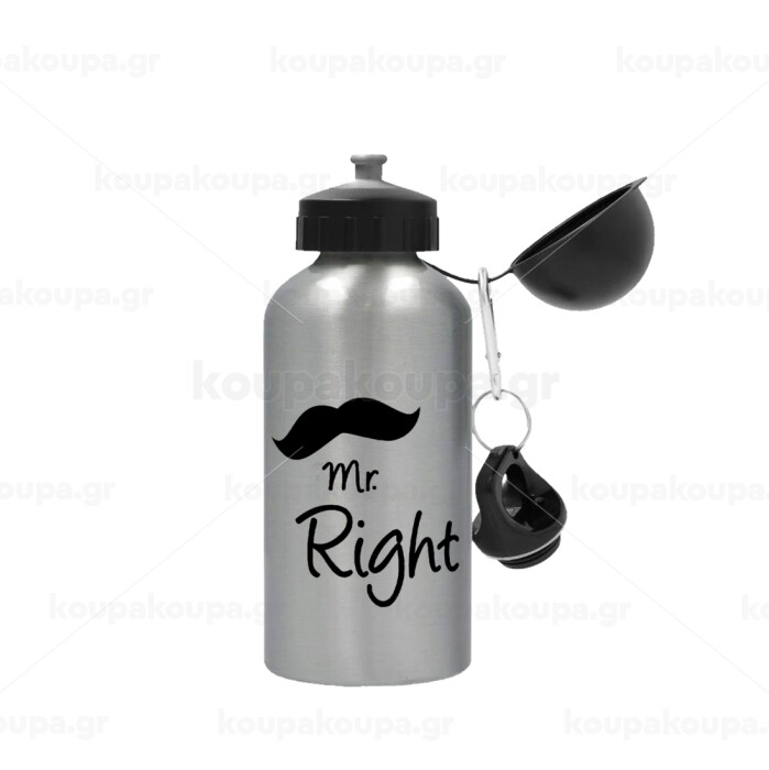 Mr right Mustache, Metallic water jug, Silver, aluminum 500ml