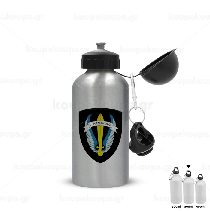 Έμβλημα Μονάδων Καταδρομών Ο Τολμων Νικα - Λοκ, Metallic water jug, Silver, aluminum 500ml