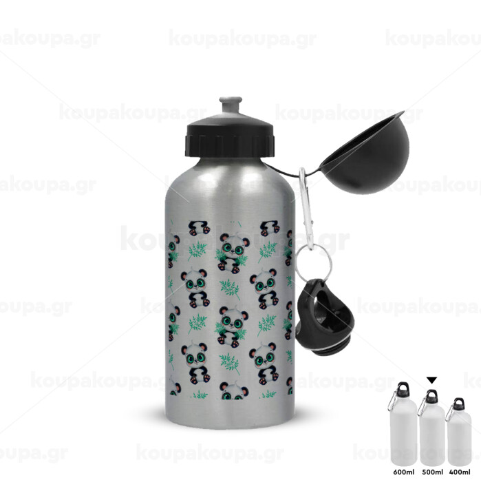 Panda, Metallic water jug, Silver, aluminum 500ml