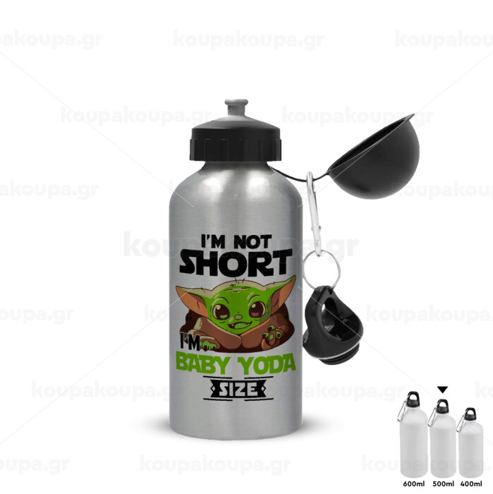 I'm not short, i'm Baby Yoda size, Metallic water jug, Silver, aluminum 500ml