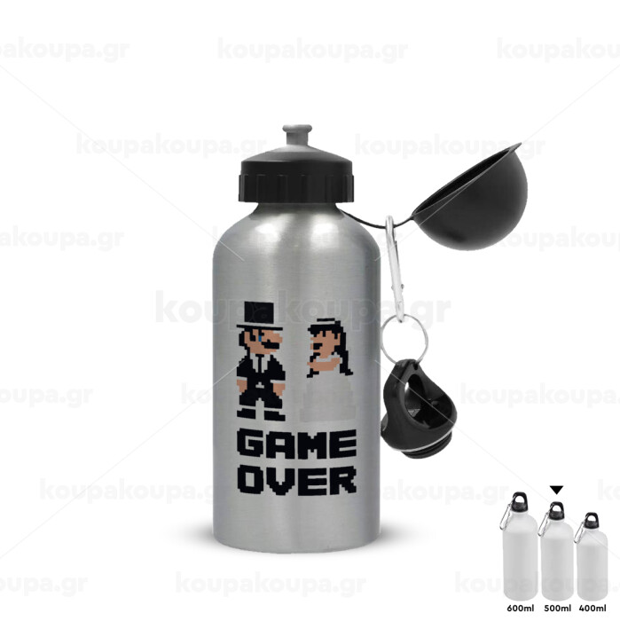 8bit Game Over Couple Wedding, Metallic water jug, Silver, aluminum 500ml