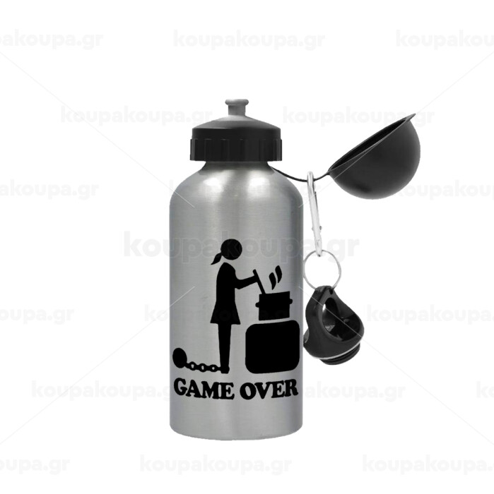 Woman Game Over, Metallic water jug, Silver, aluminum 500ml