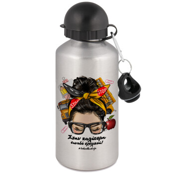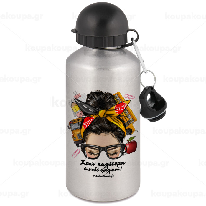 Στην καλύτερη συνοδό σχολικού!, Metallic water jug, Silver, aluminum 500ml