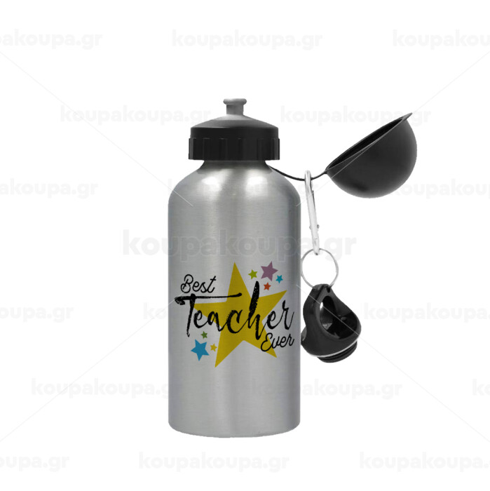 Teacher super star!!!, Metallic water jug, Silver, aluminum 500ml