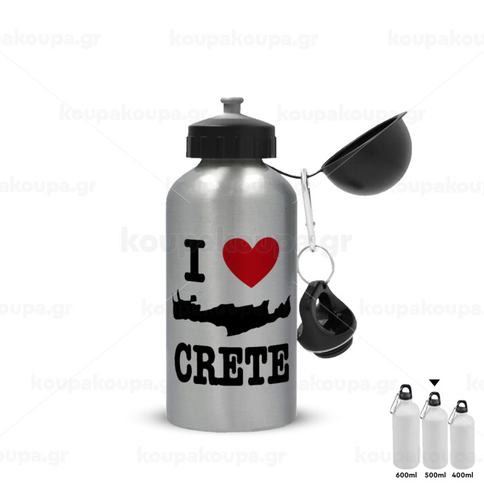 I Love Crete, Metallic water jug, Silver, aluminum 500ml